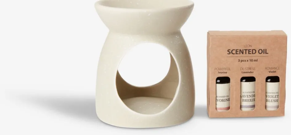 Lot de trois huiles parfumées dans des flacons en verre brun. Le lot comprend des fragrances de baies de vanille, de fleurs fraîches et de lavande. Idéal pour créer une atmosphère agréable et relaxante dans votre maison. 10 ml