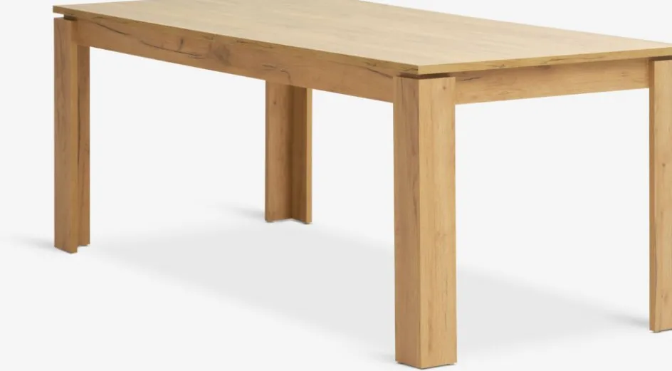 Table de salle à manger extensible avec mécanisme coulissant. Inclus : 2 rallonges à ranger sous le plateau de la table. La table de salle à manger est fabriquée en placage décoratif aspect chêne. Vous pouvez facilement allonger la table jusqu’à 235 ou 280 cm pour accueillir plus d’invités. L90 x L190 x H77 cm