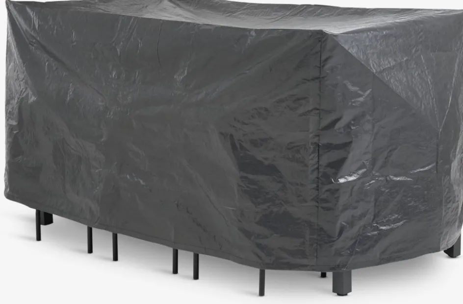 Housse imperméable pour meubles de jardin en polyéthylène gris foncé. Cette housse résistante au gel protège vos meubles d’extérieur des intempéries. Idéale pour garder votre ensemble de jardin propre et sec tout au long de l’année. l120 x L215 x H105 cm