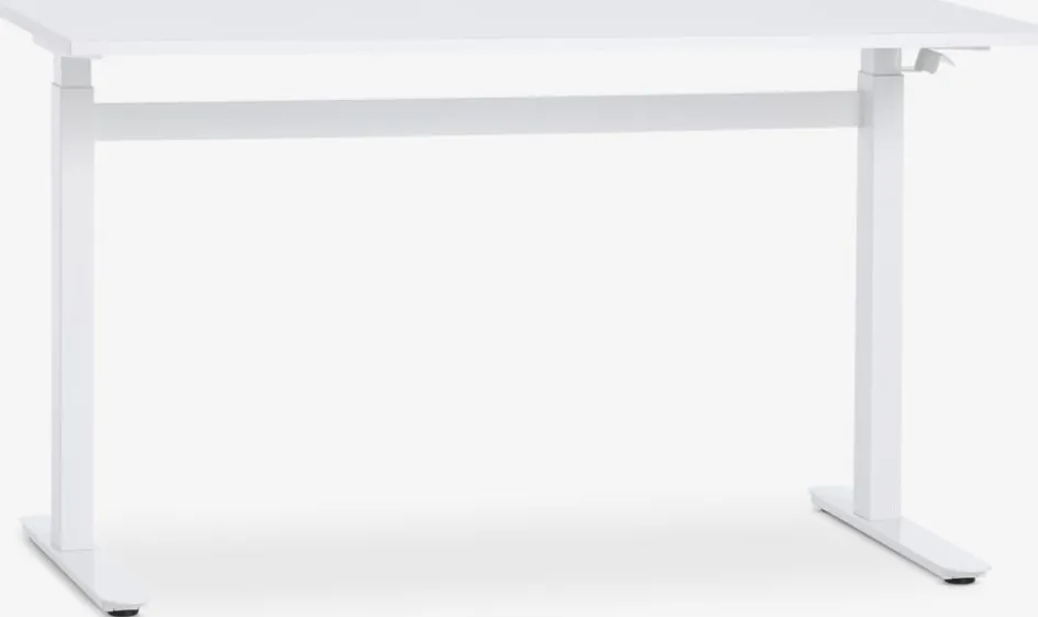 Le bureau à hauteur réglable LUNDTOFT vous offre un poste de travail petit et flexible. Vous pouvez facilement régler la hauteur du bureau en position assise ou debout grâce au mécanisme de levage à gaz silencieux qui n’utilise pas d’électricité. La conception sans fil vous permet de le placer où vous le souhaitez. Ce bureau blanc présente un design minimaliste et un plateau aux lignes droites et épurées. l70 x L130 x H71-117 cm