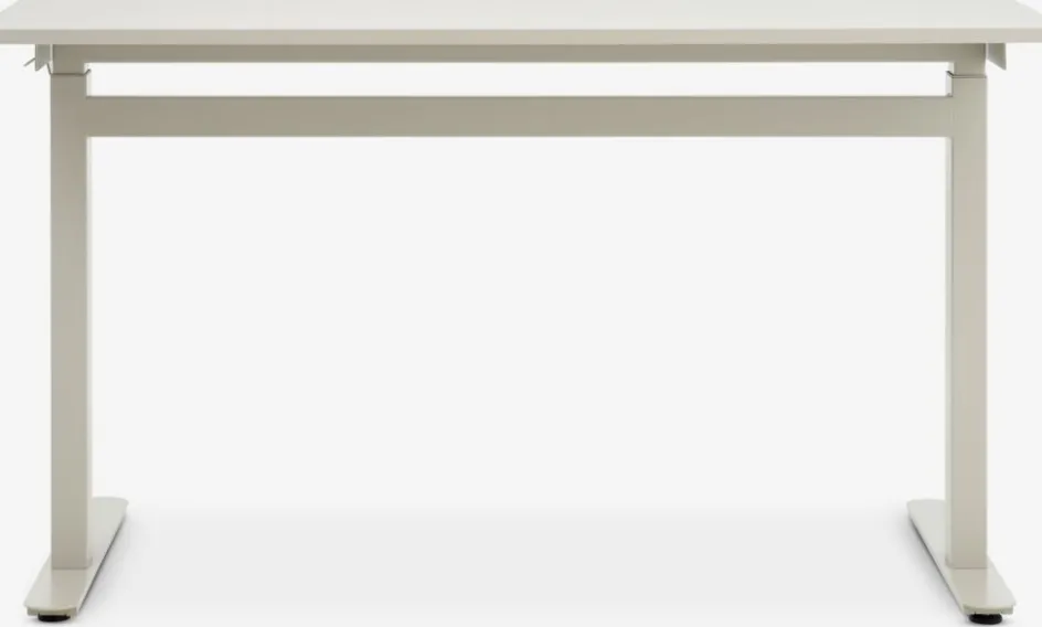Le bureau à hauteur réglable se compose d’un cadre en acier robuste et d’un plateau en placage déco durable. Toutes les surfaces sont beiges pour un look monochrome qui convient à la plupart des espaces de bureau.