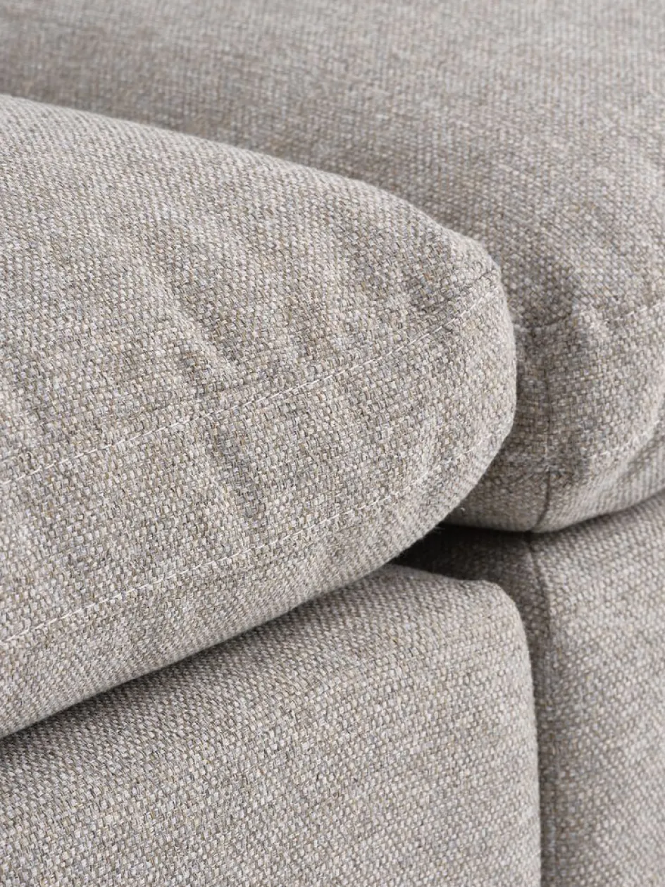 Canapé modulable comprenant 4 modules pouvant être assemblés en fonction de votre espace : 1 module central (l98 x H81 x P98 cm), 2 modules d’angle (l98 x H81 x P98 cm) et 1 module méridienne/pouf (l98 x H45 x P98 cm). En contreplaqué. Garnissage : mousse polyuréthane. Revêtement : polyester. Pieds : polypropylène.