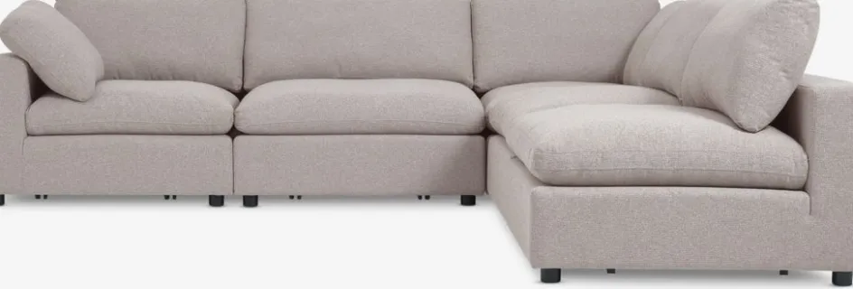 Canapé modulable comprenant 5 modules pouvant être assemblés en fonction de votre espace : 3 modules centraux (l98 x H81 x P98 cm) et 2 modules d’angle (l98 x H81 x P98 cm). En contreplaqué. Garnissage : mousse polyuréthane. Revêtement : polyester. Pieds : polypropylène.