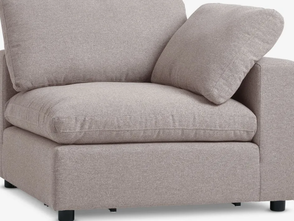 En tissu. Coussins d’assise et de dossier en mousse. Module d’angle pour canapé modulable. l98 x H81 x P98 cm