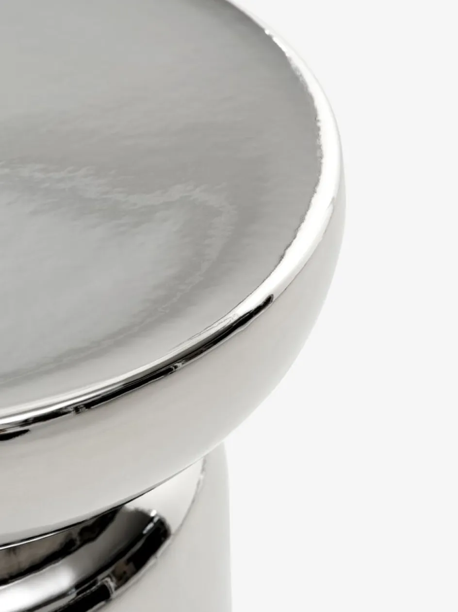 Céramique chromée. Chaque piédestal a un design unique avec des courbes et des variations naturelles. Veillez toujours à ce que les objets placés dessus soient correctement posés. Ø30 x H44 cm