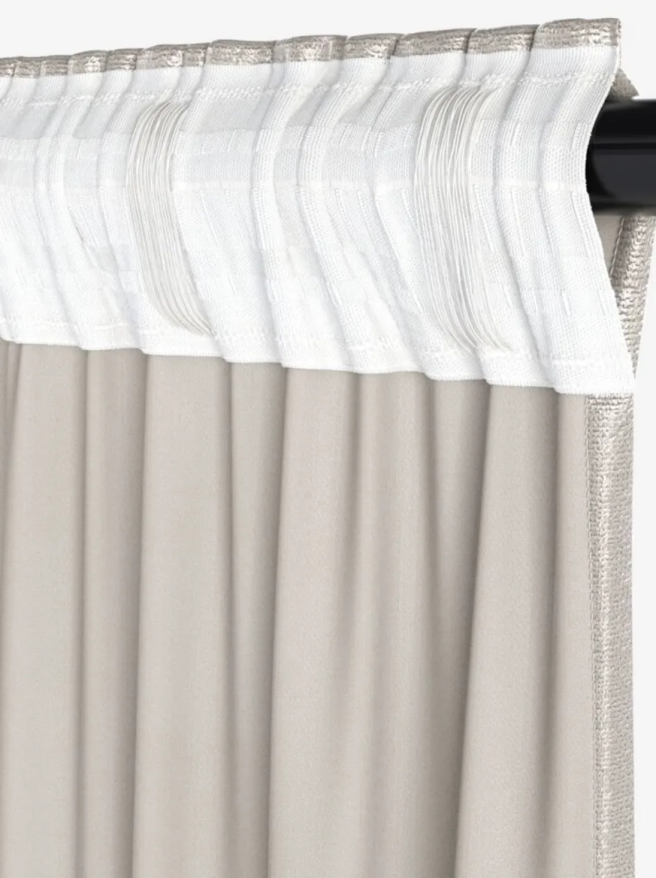 | En-tête de rideau | Bande de renfort et crochets, Pattes cachées, Tête coulissée |