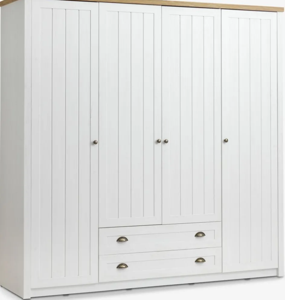 Placage décoratif et MDF (panneau de fibres moyenne densité). Intérieur de garde-robe : 8 étagères et 1 tringle à vêtements. l212 x H210 x P61 cm