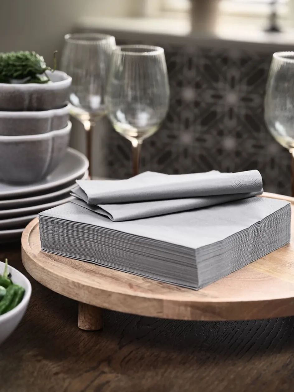 Serviettes en papier grises au design minimaliste. Idéal pour tout type d’événement ou les repas quotidiens en famille. Lot de 50. l40 x L40 cm