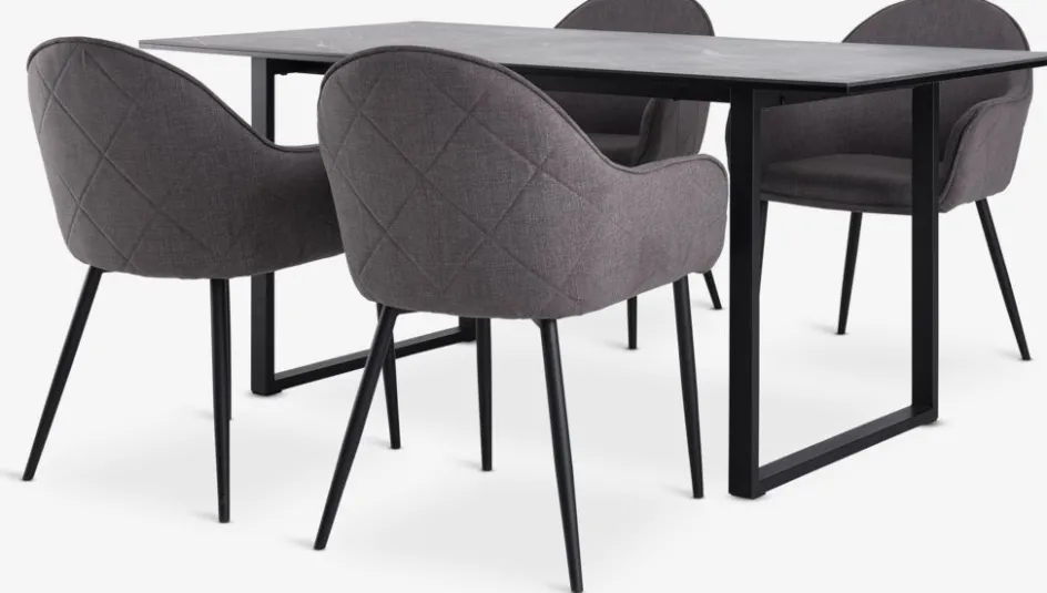 MOSELUND + SABROMOSELUND L180 table céramique + 4 SABRO chaises gris/noir-JYSK Online