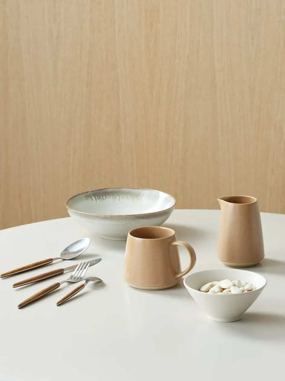 Pot à lait en grès brun avec un design contemporain et minimaliste. Résistant au lave-vaisselle. Ø8 x H11 cm