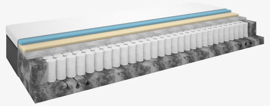 Matelas à ressorts 140×190 cm de 25 cm d’épaisseur avec 330 ressorts ensachés/m², divisé en 7 zones de confort pour un soutien unique et ergonomique. Le matelas est matelassé d’un côté avec de la mousse à mémoire de forme qui soulage la pression, de la mousse gel et de la mousse haute résilience et de la mousse haute résilience de l’autre côté. La mousse à mémoire de forme s’adapte parfaitement aux contours de votre corps. Coutil lavable.