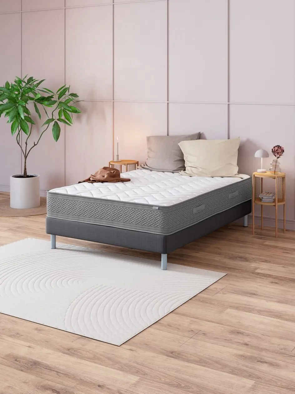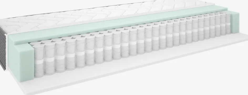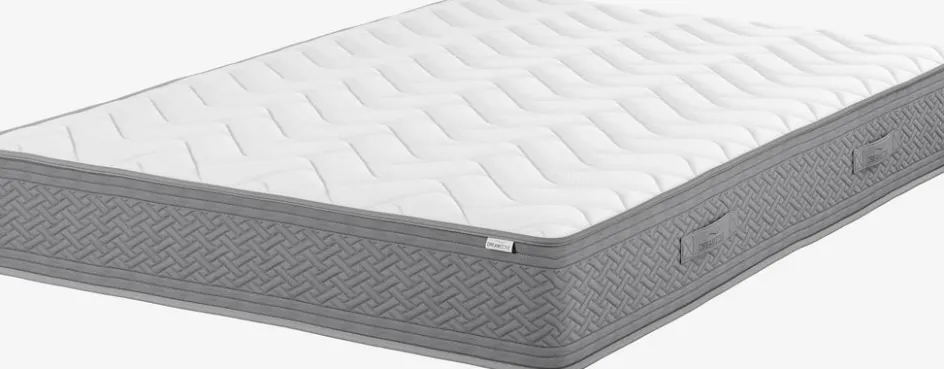 Matelas à ressorts 140×190 cm réversible de 24 cm d’épaisseur avec 240 ressorts ensachés/m², divisé en 3 zones de confort pour un soutien correct et confortable. Le matelas est matelassé avec de la mousse polyéther. L’enveloppe possède un épais matelassage avec d’un côté de la mousse à mémoire de forme qui soulage la pression et de l’autre de la mousse polyéther. La mousse à mémoire de forme s’adapte précisément aux contours du corps.