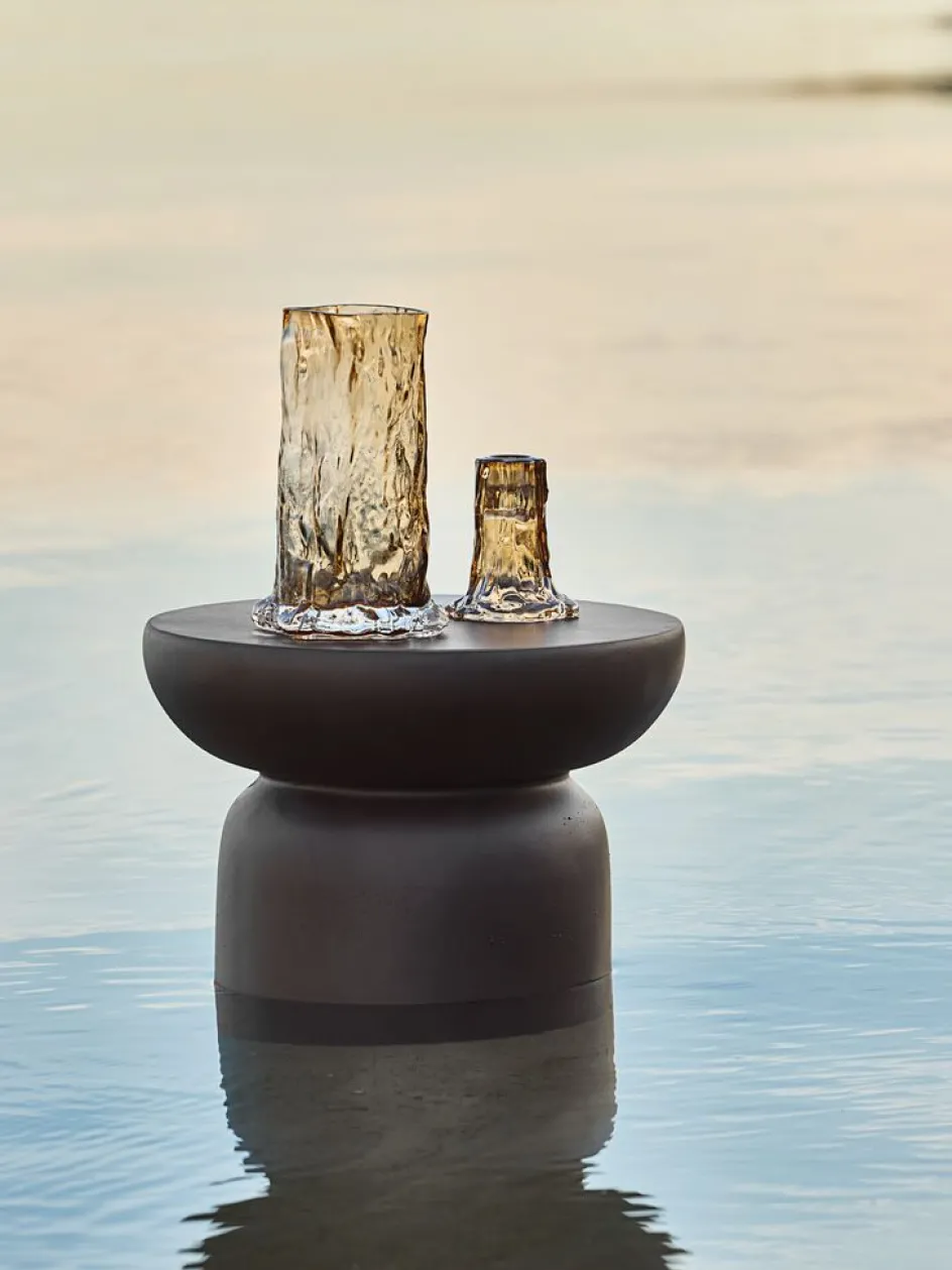 Chandelier en verre couleur amande. Il présente un design unique et fluide avec une forme organique qui crée un aspect artistique. Ø9 x H10 cm