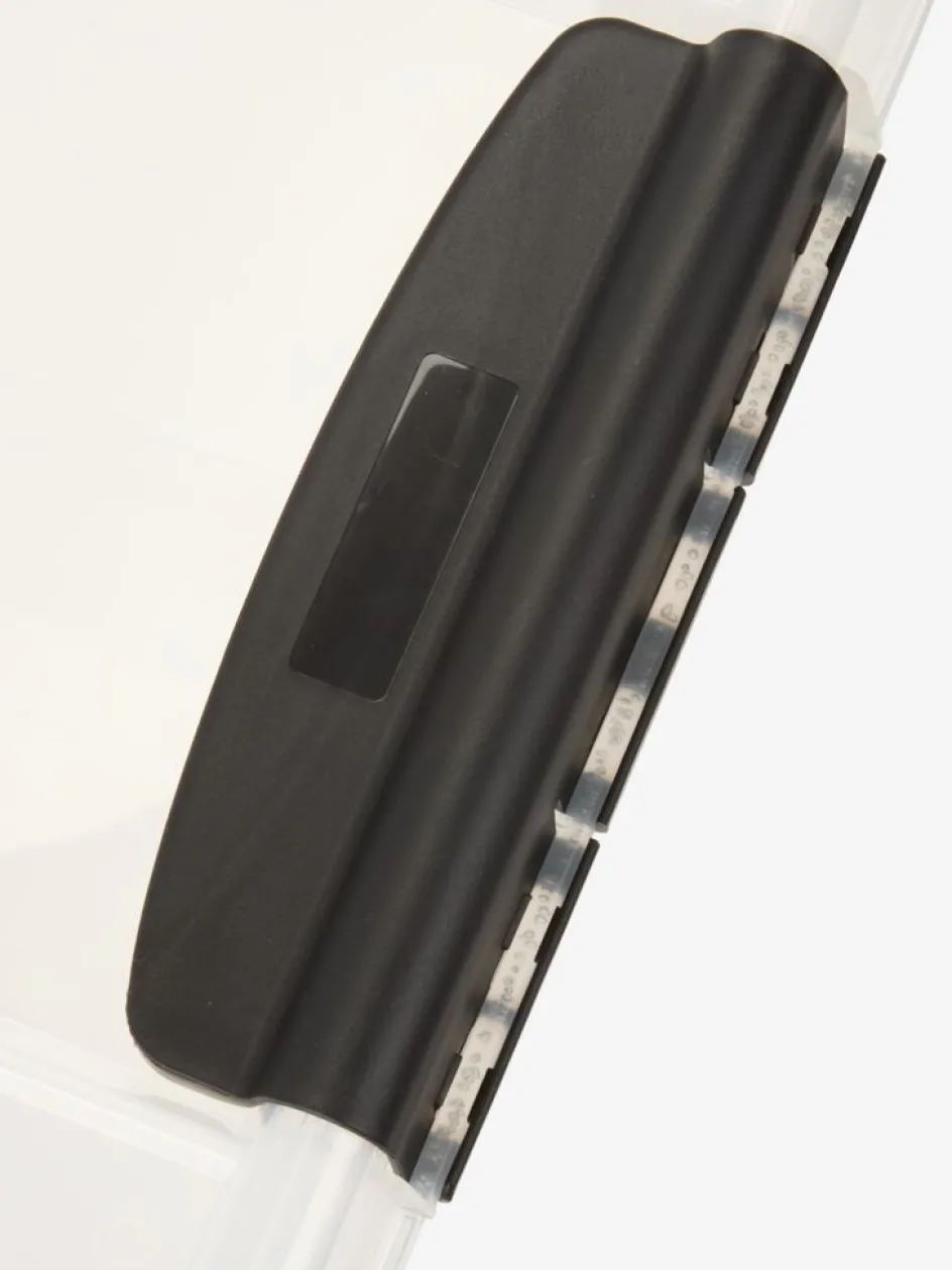 Boîte de rangement avec couvercle en plastique transparent, ce qui facilite la visualisation et donne un aperçu du contenu. La boîte est empilable, ce qui vous permet d’optimiser votre espace de rangement. Les rainures dans le couvercle garantissent que les boîtes restent stables lorsqu’elles sont empilées. Les poignées à clip pratiques assurent une fermeture hermétique et une bonne prise en main pour le transport et le déplacement de la boîte. Capacité de 14 litres. l39 x L51 x H43 cm