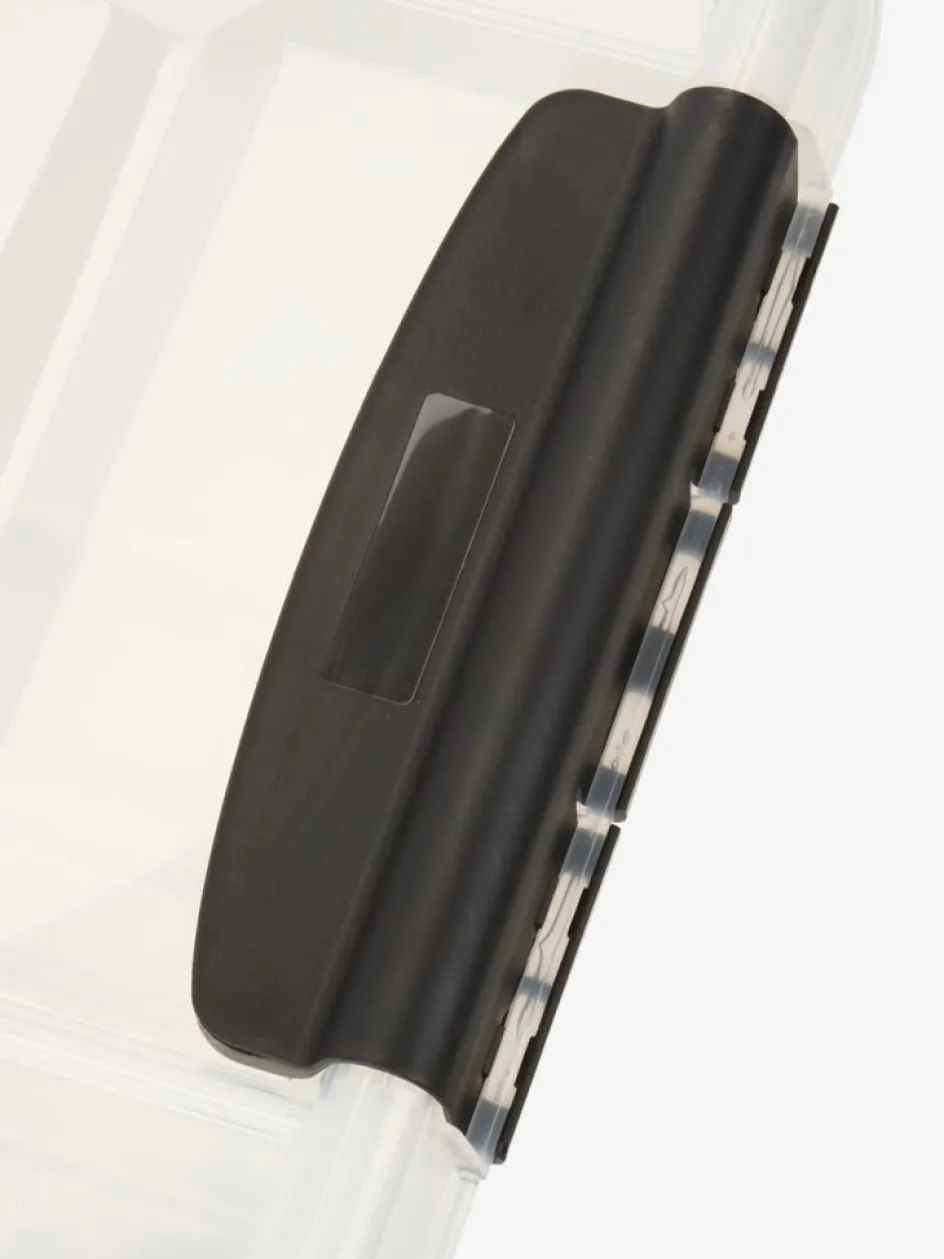 Boîte de rangement avec couvercle en plastique transparent, ce qui permet de voir facilement et d’avoir un aperçu du contenu. La boîte est empilable, vous pouvez donc optimiser votre espace de rangement. Les rainures dans le couvercle garantissent que les boîtes restent stables lorsqu’elles sont empilées. Les poignées à clip pratiques assurent une fermeture hermétique et une bonne prise en main lors du transport et du déplacement de la boîte. La boîte est munie de roulettes, elle peut donc être facilement roulée et déplacée. Peut contenir 70 litres. l39 x L73 x H39 cm