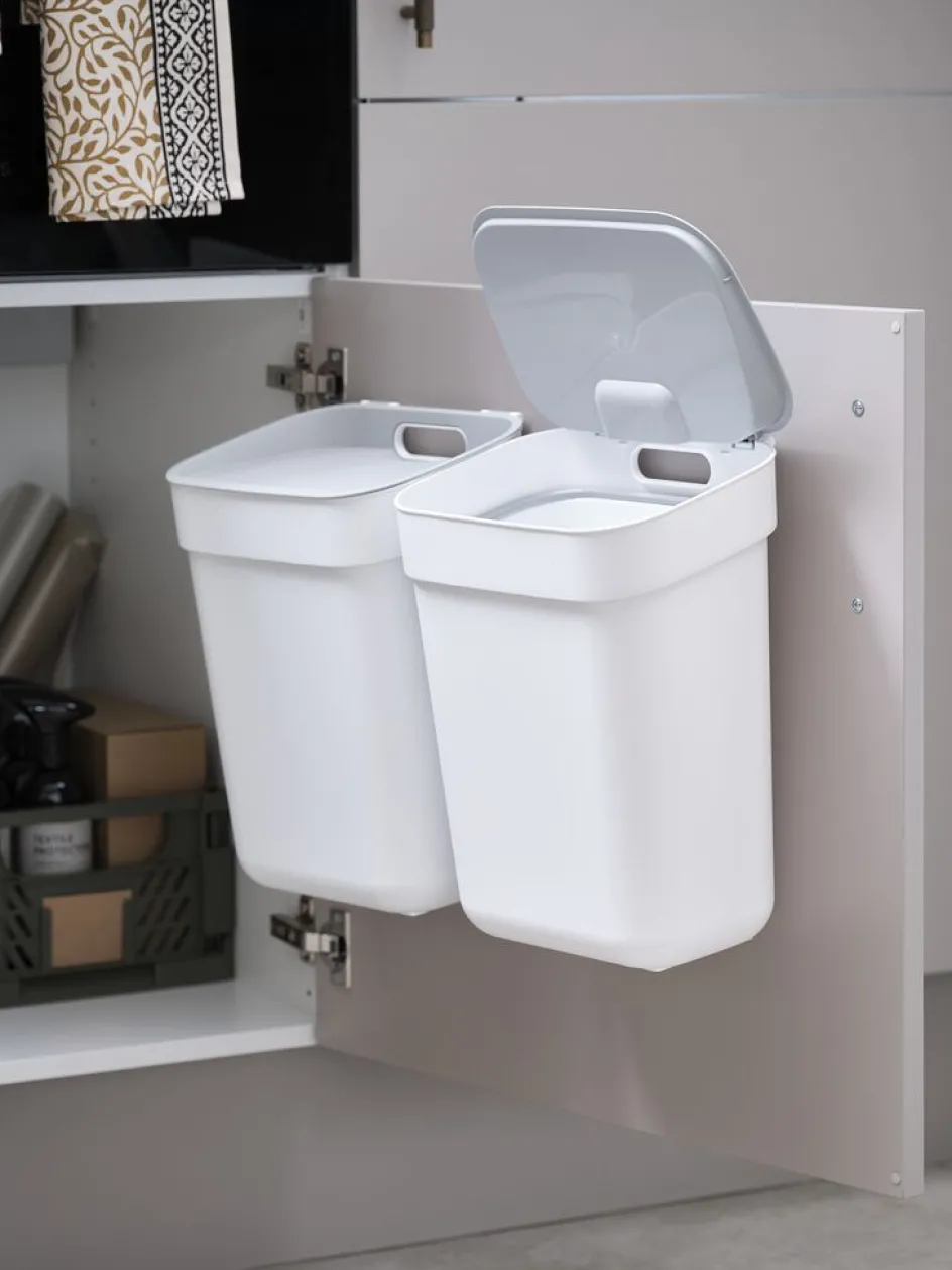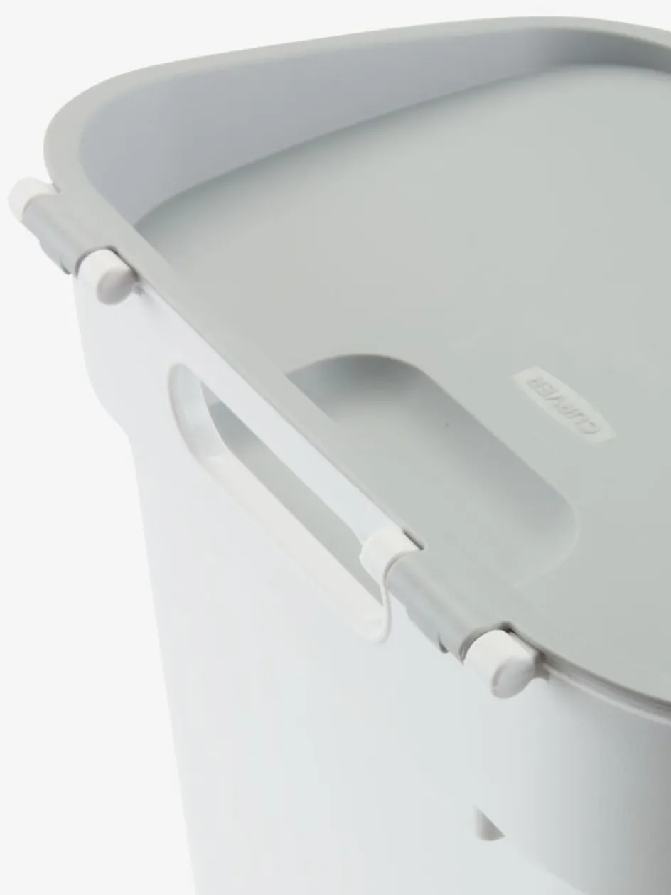 Poubelle blanche de 10 litres de la collection Ready to Collect par Curver. La poubelle est fabriquée en plastique (100% recyclé), ce qui la rend durable et facile à nettoyer. Elle possède un couvercle basculant pratique et est idéale pour le tri des déchets dans la cuisine ou la buanderie. Toutes les poubelles de la série Ready to Collect peuvent être empilées ou fixées au mur pour économiser de l’espace. l19 x L25 x H33 cm