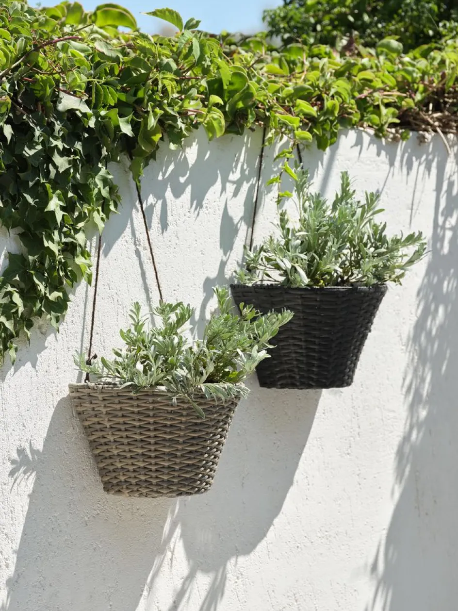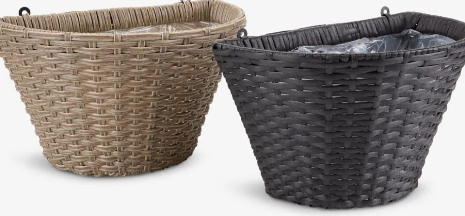 Jardinière en polyrotin et acier, conçue pour être suspendue à un mur. Ce panier suspendu est idéal pour les plantes à croissance pendante, et il est également adapté aux endroits avec un espace limité tels que les balcons ou un coin de la terrasse. Un trou de drainage peut facilement être créé pour permettre à l’eau excessive de s’écouler. Disponible en couleurs assorties. l18 x L30 x H18 cm