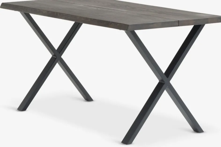 Partie supérieure : chêne massif. Pieds : acier. l80 x L140 x H75 cm