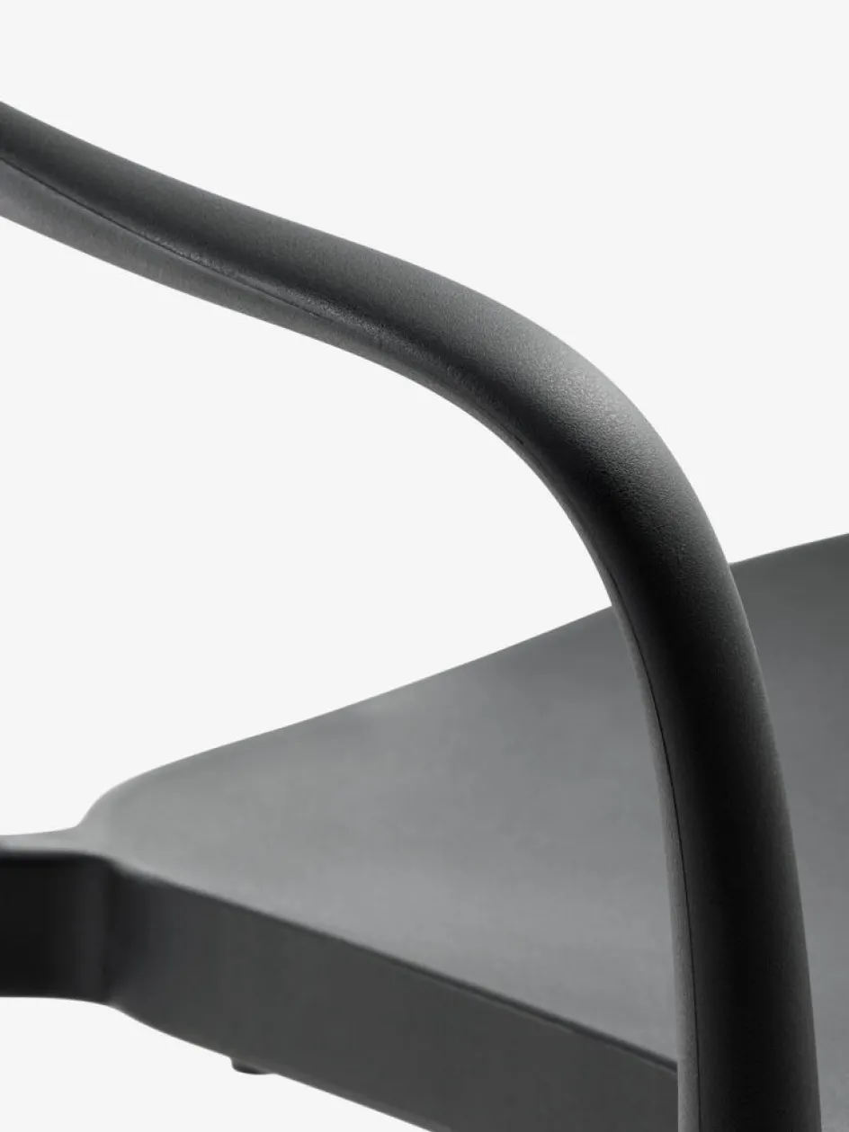 Ensemble meubles de jardin 4 places. Table: Aluminium et bois dur FSC® huilé. l91 x L91 x H75 cm. Chaise: Plastique résistant aux UV. Empilable.