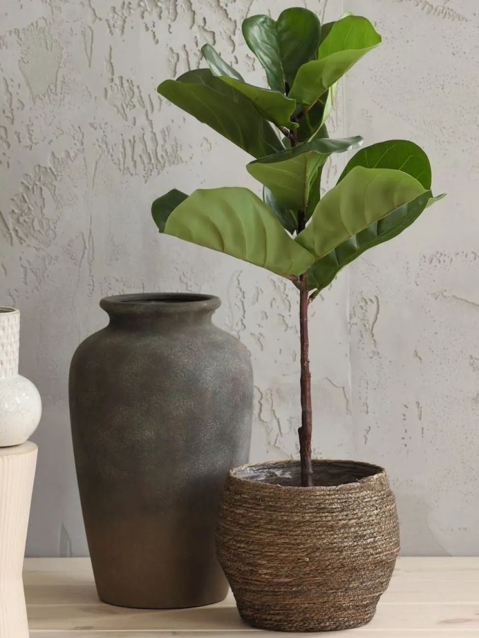 Cache-pot rond en jonc brun foncé avec une doublure en plastique. Le matériau ajoute une touche de nature à votre décoration intérieure. Peut également être utilisé pour le rangement décoratif. Ø26 x H23 cm