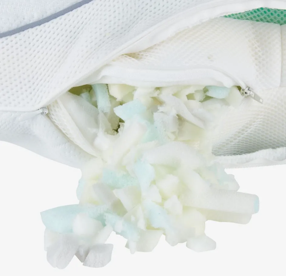 Le matelassage en mousse comporte de petits trous qui augmentent la circulation de l’air à travers l’oreiller et évacuent l’humidité. Cela permet de garder l’oreiller frais et sec, même après une utilisation prolongée.