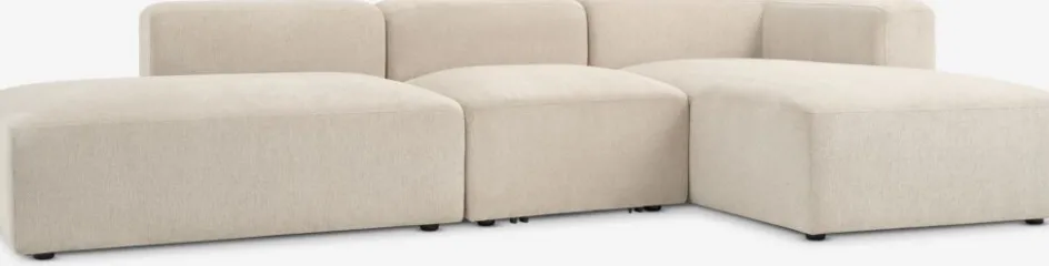 Canapé modulable avec 3 modules. 1 module central, 1 module méridienne et 1 module d’extrémité : tissu. Coussins d’assise en ressorts ensachés et garnissage en mousse, coussins de dossier en mousse. l285 x H64 x P94/155 cm