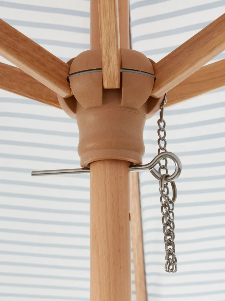Le parasol est équipé d’un poteau en bois dur FSC® laqué, qui allie durabilité et beauté naturelle. Le poids du bois dur ajoute à la stabilité du parasol. La laque recouvre le bois d’une couche protectrice qui le protège de l’usure et des intempéries.
