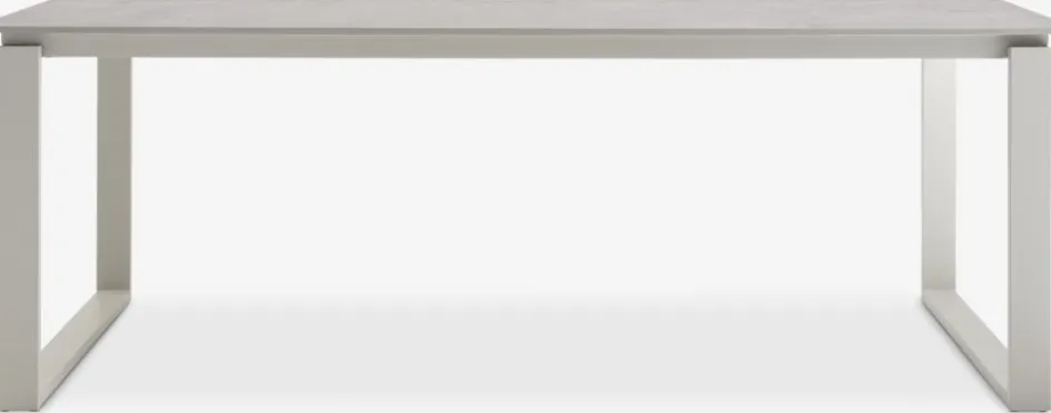 Ensemble de meubles de jardin 4 personnes. Table : aluminium et bois composite DURAWOOD®. Le DURAWOOD® est un matériau composite durable composé de fibres de bois dur FSC® et de plastique. l100 x L215 x H75 cm. Chaise : plastique résistant aux UV. Empilable.