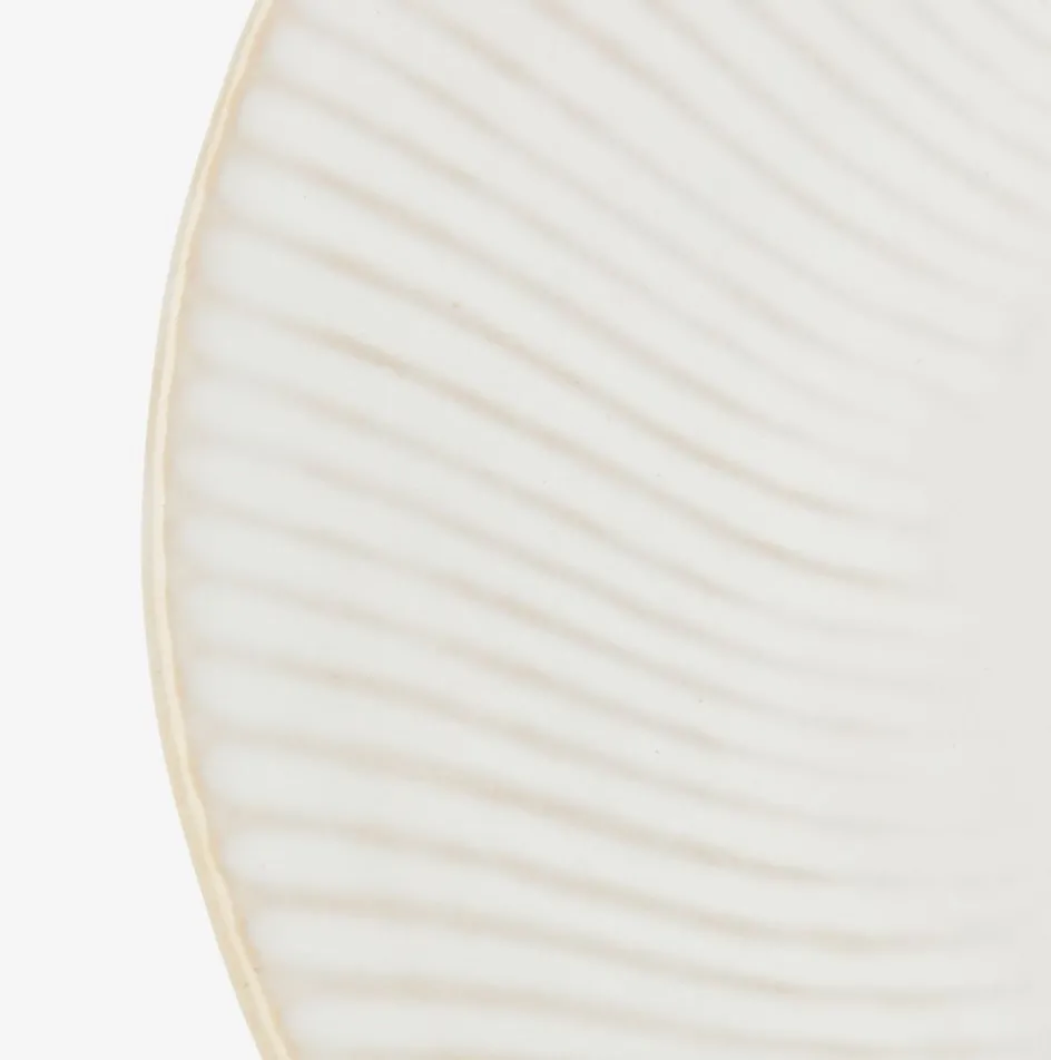 Assiette en faïence blanche au design cannelé classique. Convient à la fois pour les repas quotidiens et les occasions spéciales grâce à son apparence simple mais élégante. Résistant au lave-vaisselle. Ø21 cm