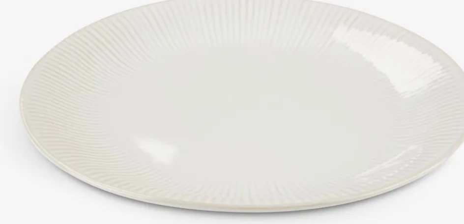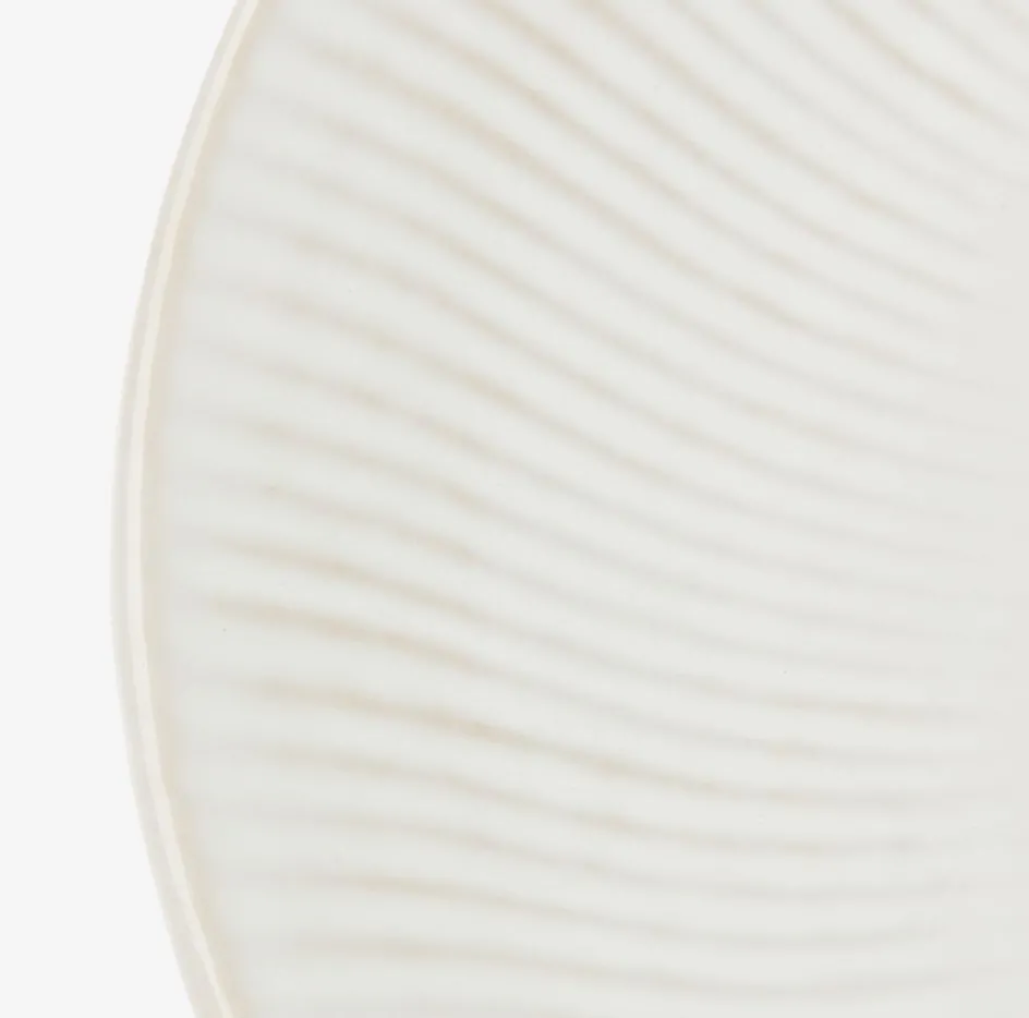 Assiette en faïence blanche au design cannelé classique. Convient à la fois pour les repas quotidiens et les occasions spéciales grâce à son apparence simple mais élégante. Résistant au lave-vaisselle. Ø27 cm