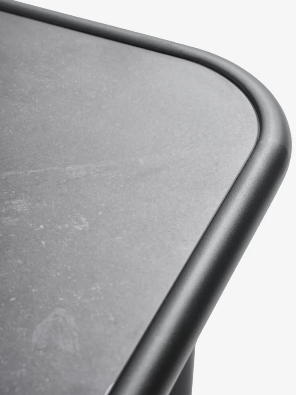 La table lounge est dotée d’un plateau en pierre frittée. La surface en pierre est très résistante aux rayures, aux taches et à la chaleur. Vous pouvez par exemple poser des casseroles et des poêles chaudes directement sur la surface. La pierre frittée est résistante aux intempéries, ce qui signifie qu’elle peut supporter l’exposition au soleil, à l’humidité et aux changements de température.