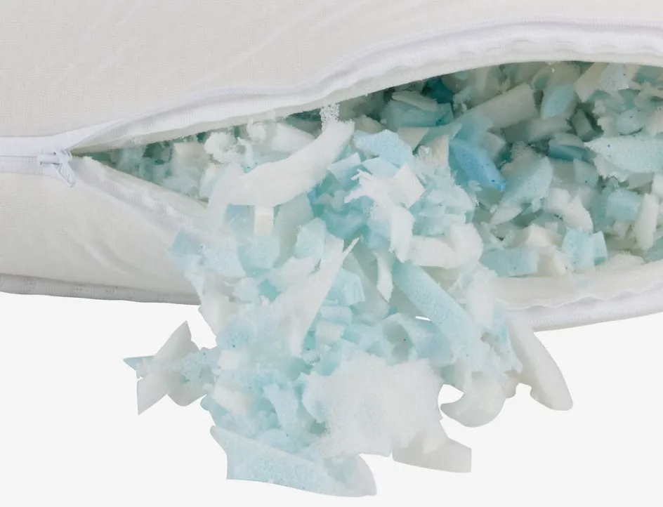 Le garnissage en flocons de mousse peut être retiré, ce qui vous permet d’ajuster l’oreiller jusqu’à trouver la hauteur qui convient à votre position de sommeil. En règle générale, la hauteur de votre oreiller doit permettre de maintenir votre cou et votre colonne vertébrale alignés en ligne droite. La hauteur idéale dépend principalement de votre position de sommeil, mais la fermeté de votre matelas joue également un rôle.