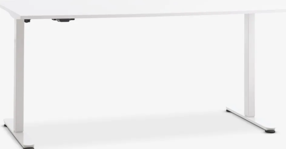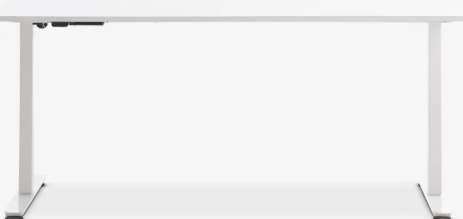 Le bureau à hauteur réglable se compose d’un cadre en acier robuste et d’un plateau en placage déco durable. Toutes les surfaces sont blanches pour un look monochrome qui convient à la plupart des espaces de bureau.