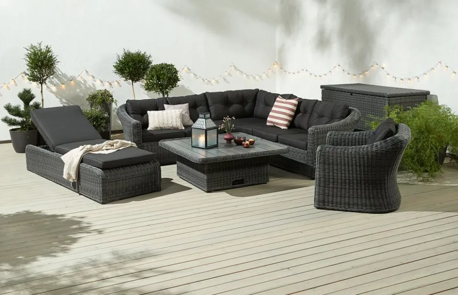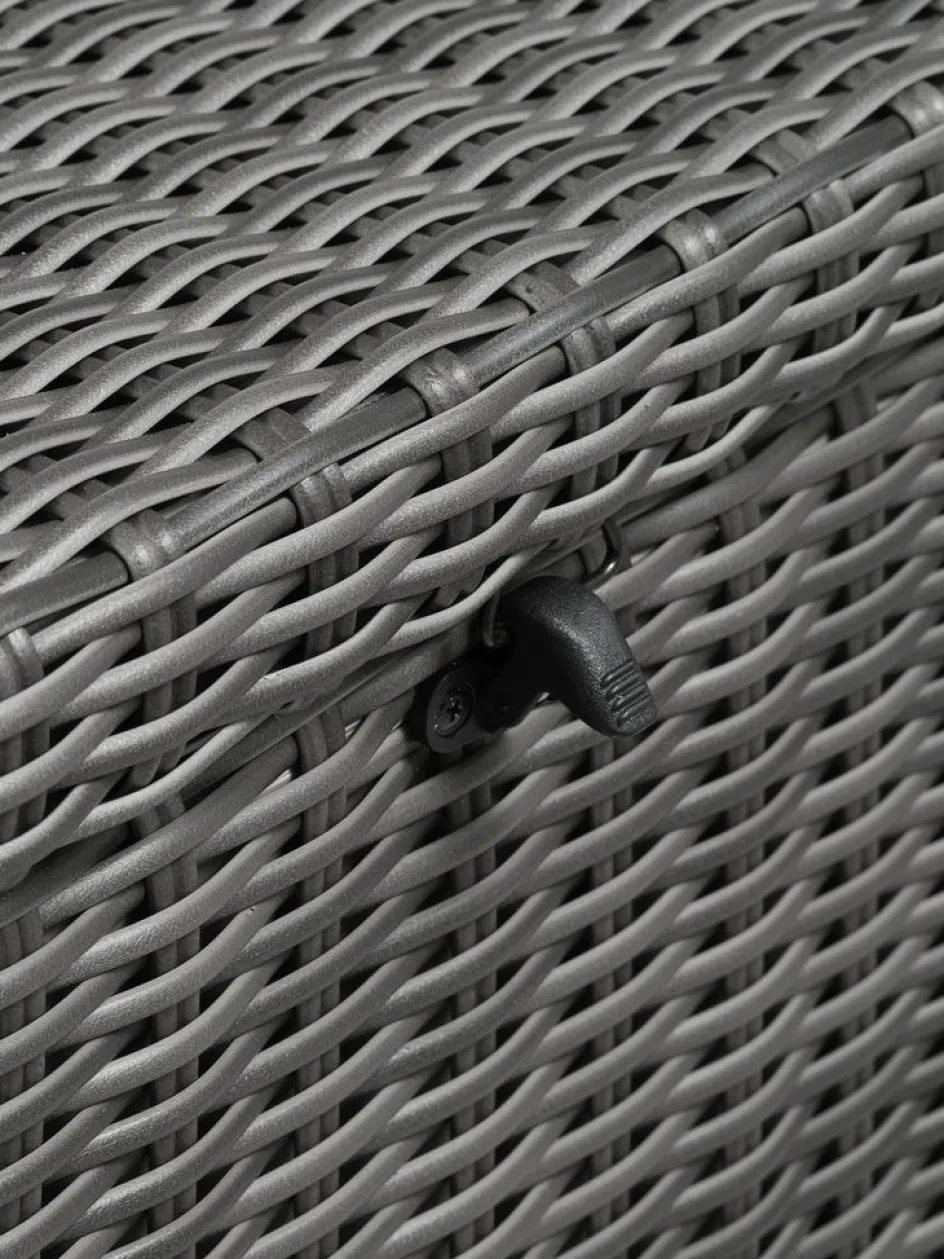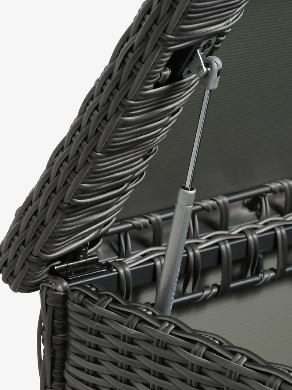 Coffre à coussins en aluminium et polyrotin. Avec couvercle hydraulique. Résistant au gel. l150 x H91 x P77 cm