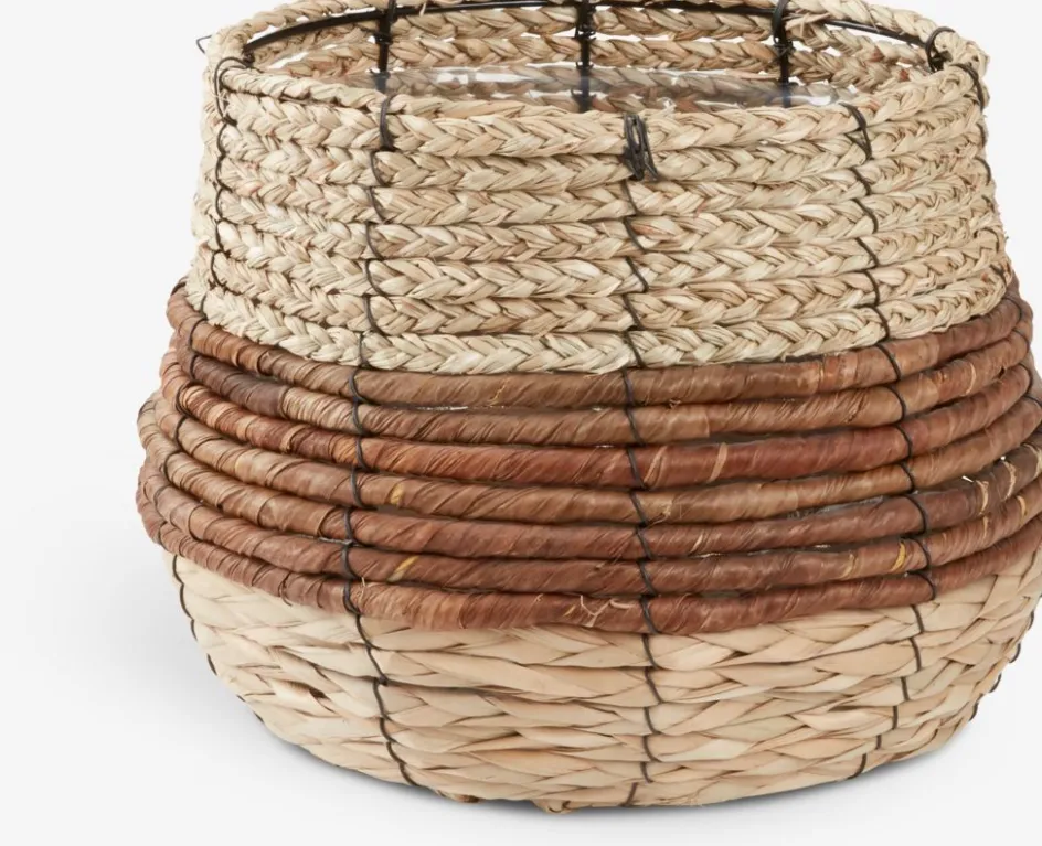 Cache-pot fabriqué en matériaux naturels au design tressé et bicolore. La finition texturée ajoute un élément rustique et décoratif à votre intérieur, idéal pour mettre en valeur les plantes d’intérieur. Ø25 x H23 cm