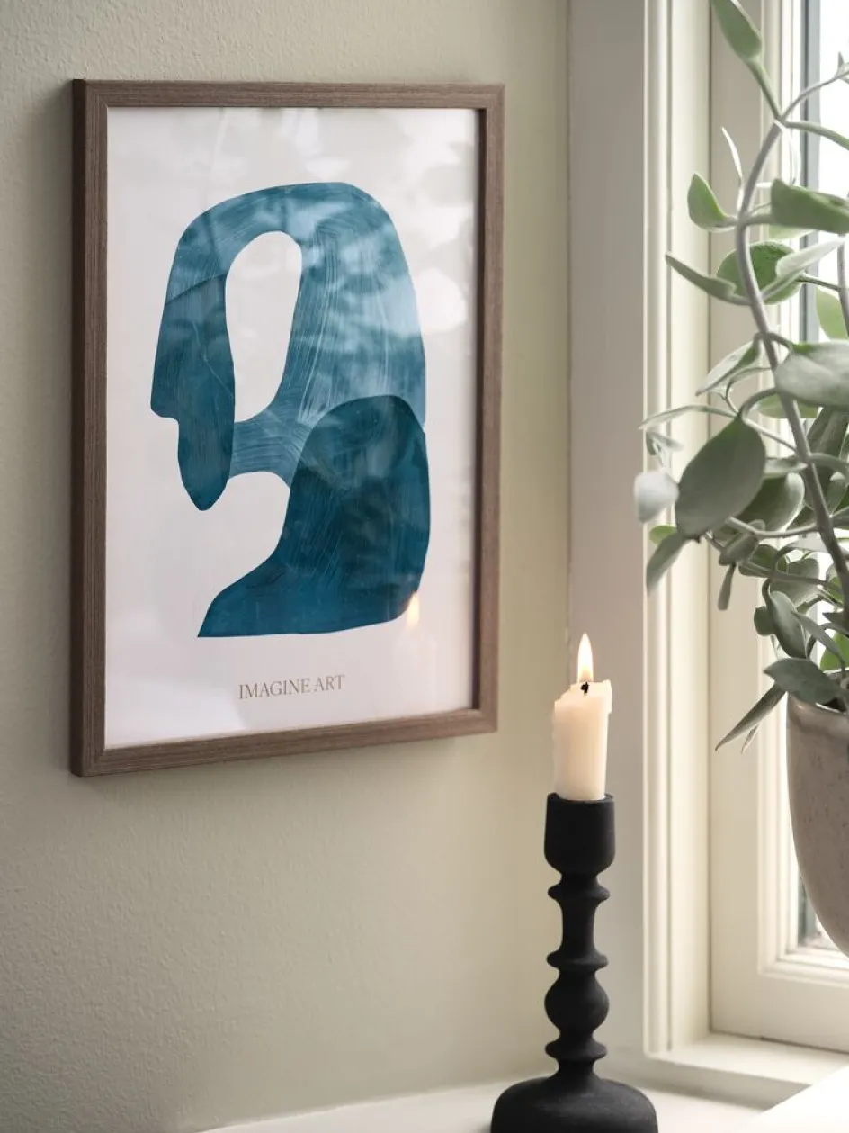 Cadre photo 21×30 cm en placage de bois foncé avec une face avant en plastique léger. Convient pour des posters et photos de format A4. l21 x H30 cm