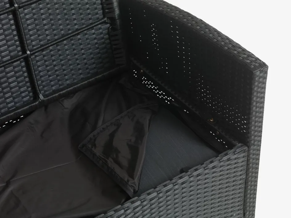 Le canapé lounge dispose d’un compartiment de rangement pratique intégré sous l’assise, qui comprend un sac de rangement imperméable. Il est idéal pour protéger les coussins de jardin lorsqu’ils ne sont pas utilisés ou pour ranger d’autres articles que vous souhaitez garder à l’abri des regards.