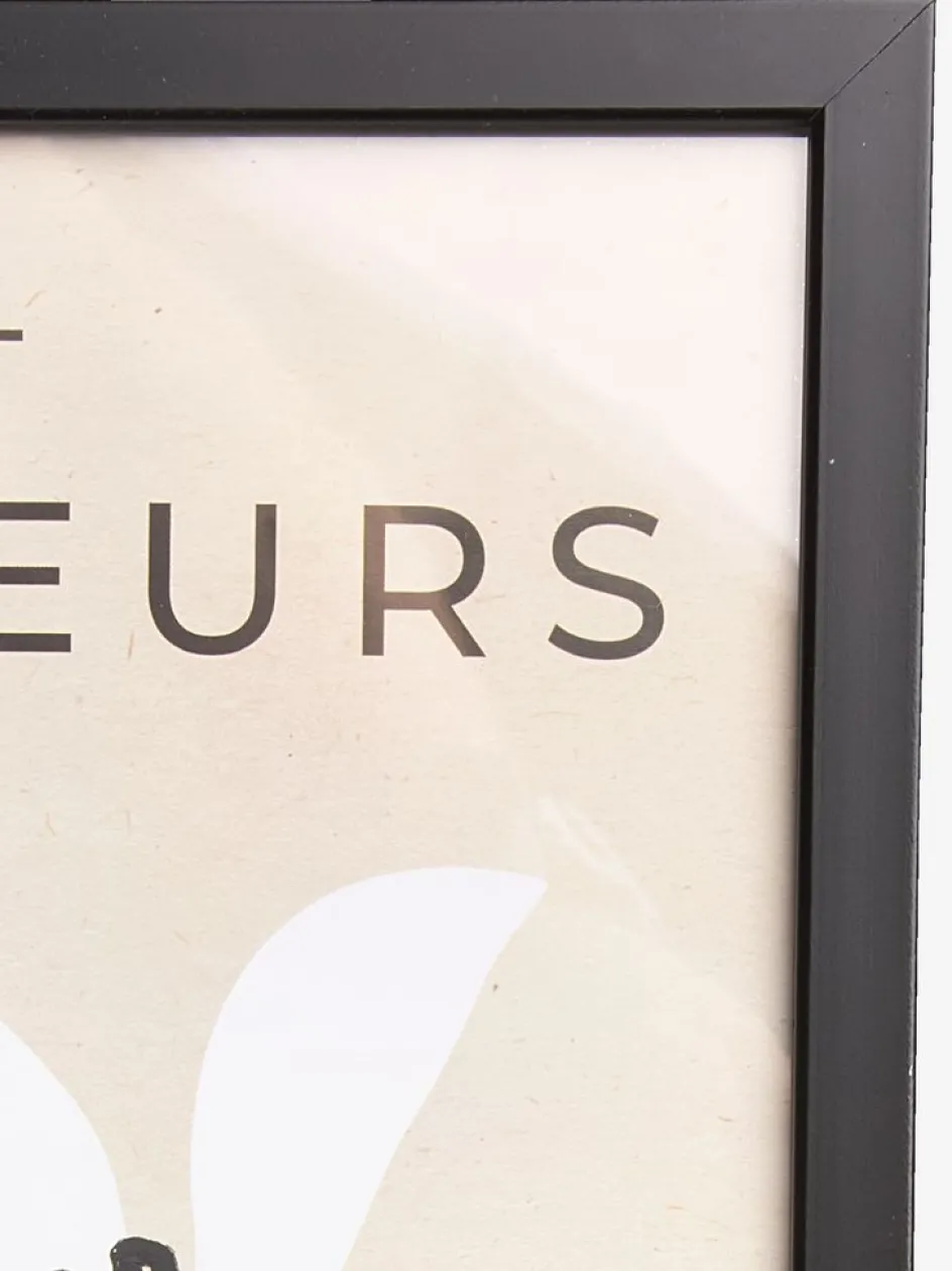 Cadre photo noir de 21×30 cm en MDF avec face avant en plastique léger. Convient aux posters et photos de taille A4. Avec support.