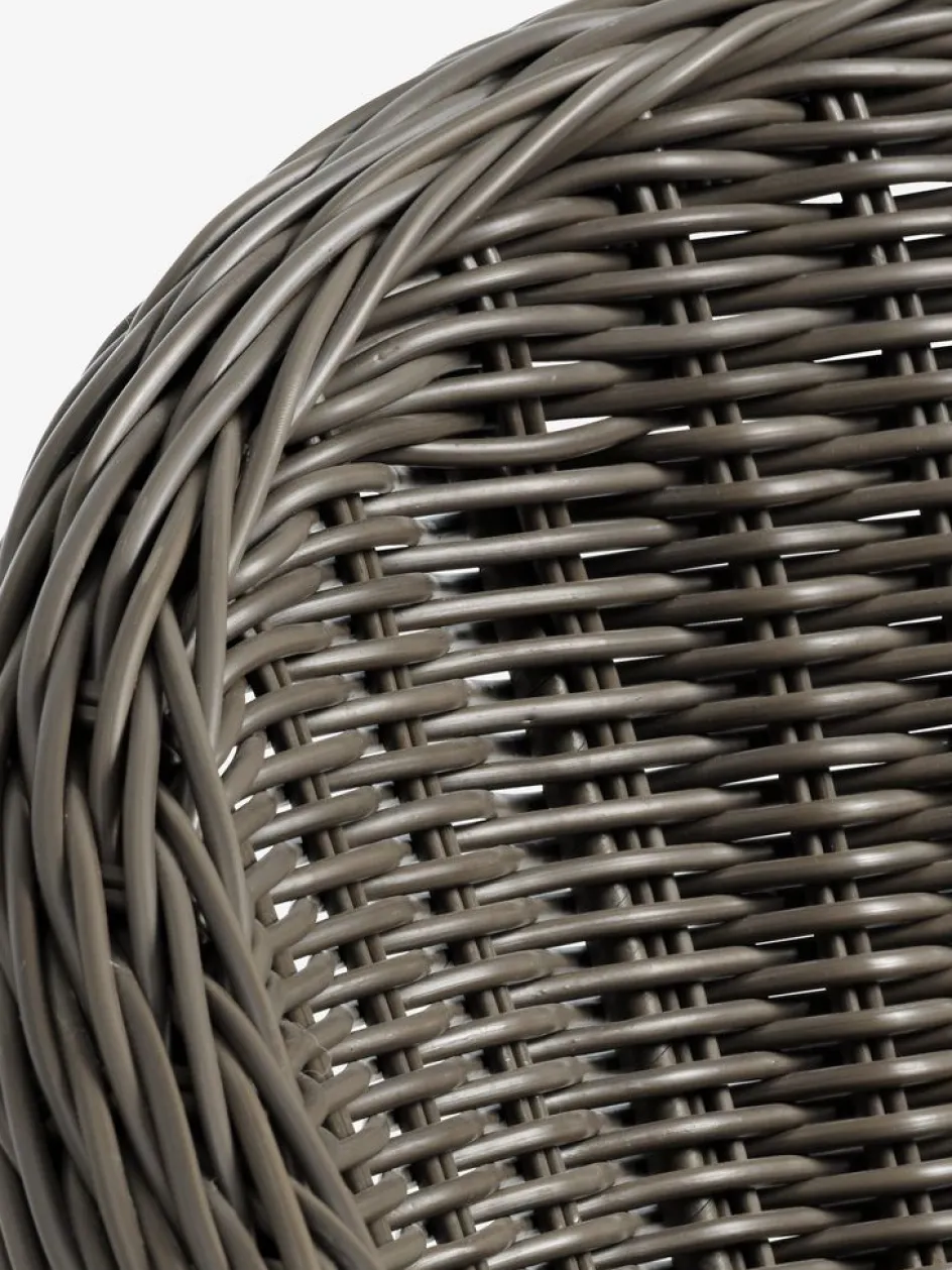 Ensemble meubles de jardin 4 places. Table: Aluminium et imitation bois. Incl. 2 rallonges pouvant être rangées sous le plateau. l95 x L206/264/321 x H76 cm. Chaise: Aluminium et polyrotin.