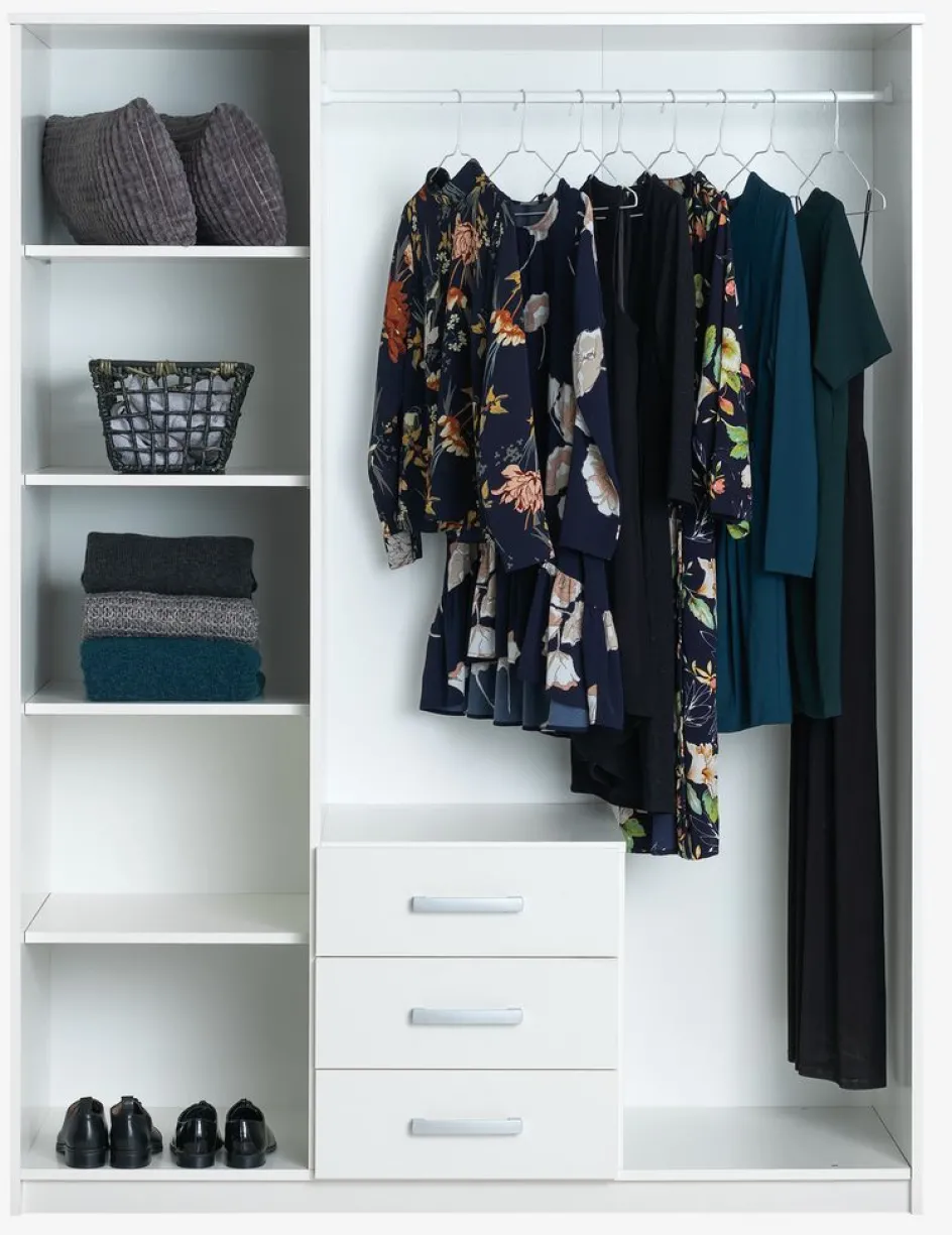 | Inclus | 1 tringle à vêtements 4 étagères, 1 miroir, 3 portes, 3 tiroirs |
