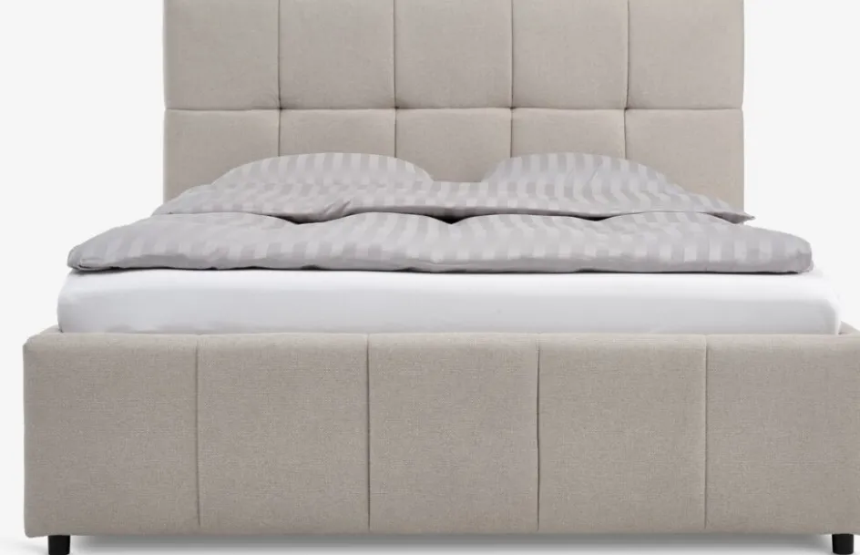 Tissu. Avec espace de rangement et sommier à levage hydraulique. Pour matelas à ressorts et en mousse de 140×190 cm. Incl. sommier à lattes. Excl. matelas. l160 x L207 x H115 cm