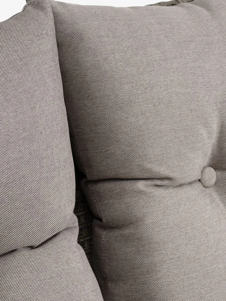 Les coussins d’assise et de dossier haut de gamme inclus vous permettent de vous asseoir et de vous détendre dans un confort optimal. Les coussins sont recouverts d’une housse tissée durable, qui les rend résistants à l’usure. Rangez les coussins à l’intérieur lorsqu’ils ne sont pas utilisés afin de les protéger des intempéries et de prolonger leur durée de vie.