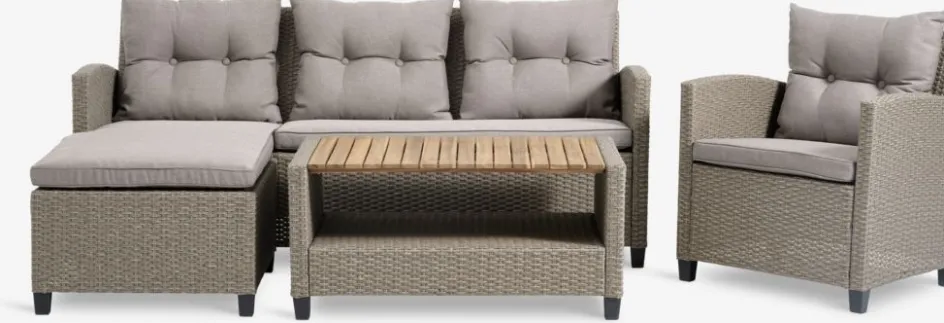 - Ensemble lounge 4 personnes: canapé lounge 2 places, 2 fauteuils lounge et 1 table