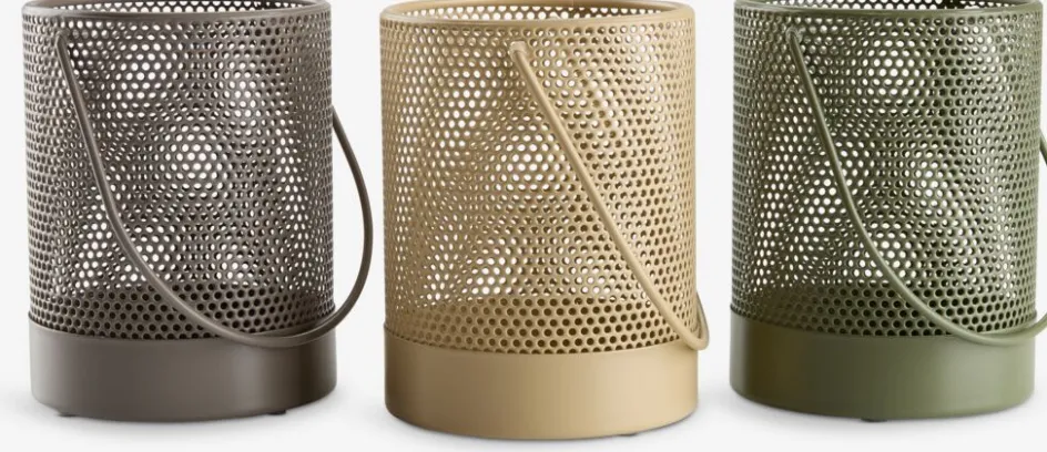 Lanterne en acier peint par poudrage au design moderne et perforé. Une fois allumée, elle projette un magnifique jeu de lumière. Sa taille compacte et sa poignée permettent de la placer facilement dans le jardin ou la maison. Disponible en couleurs assorties et vendue à l’unité. Ø8 x H10 cm
