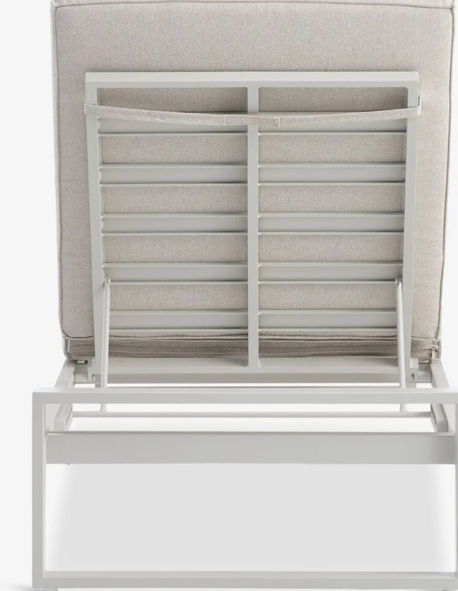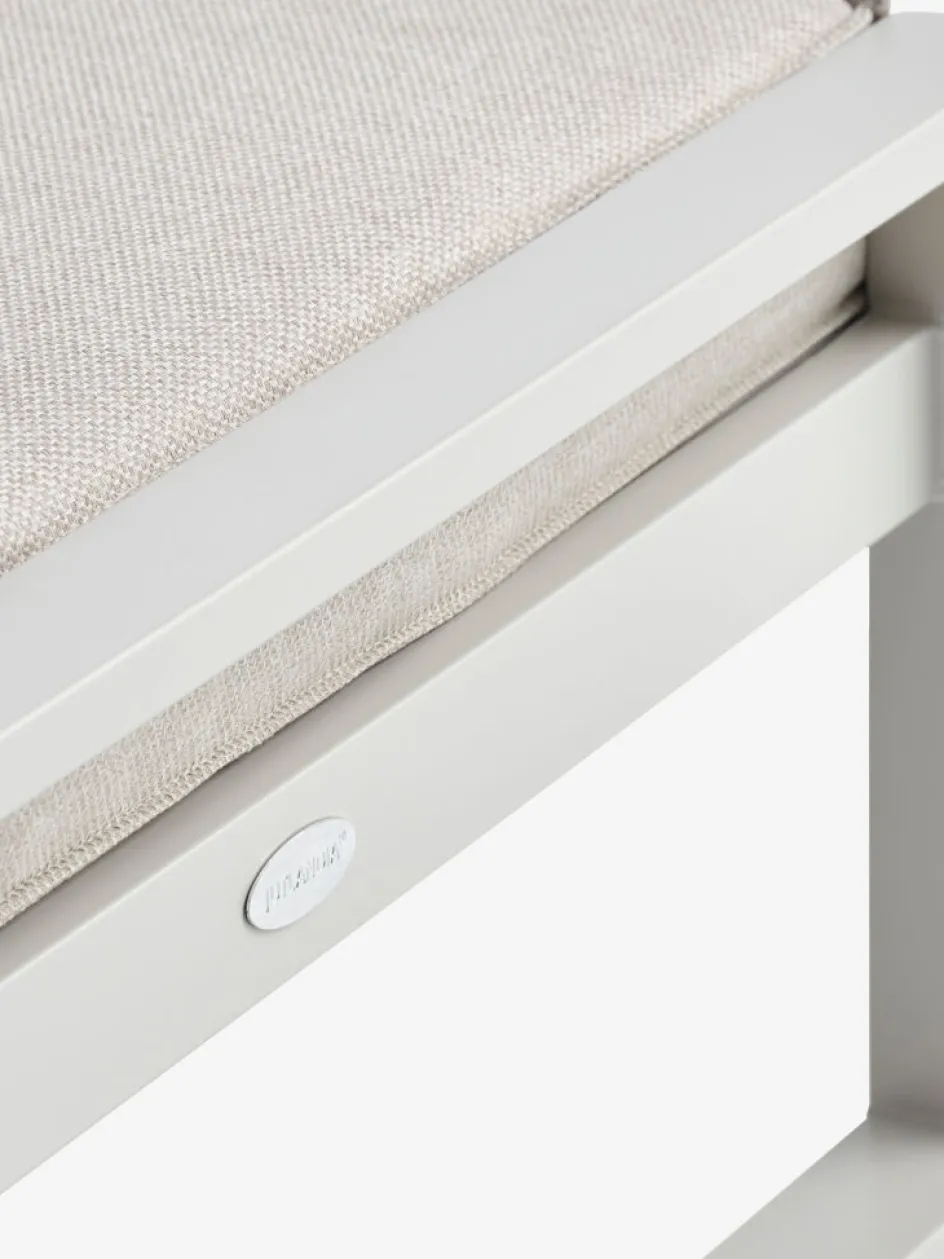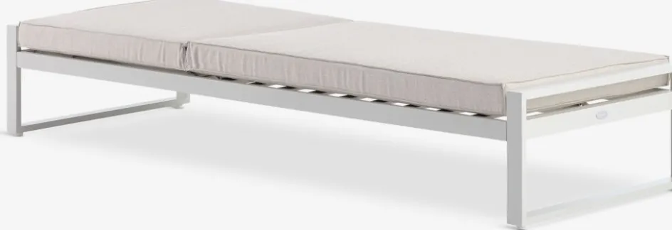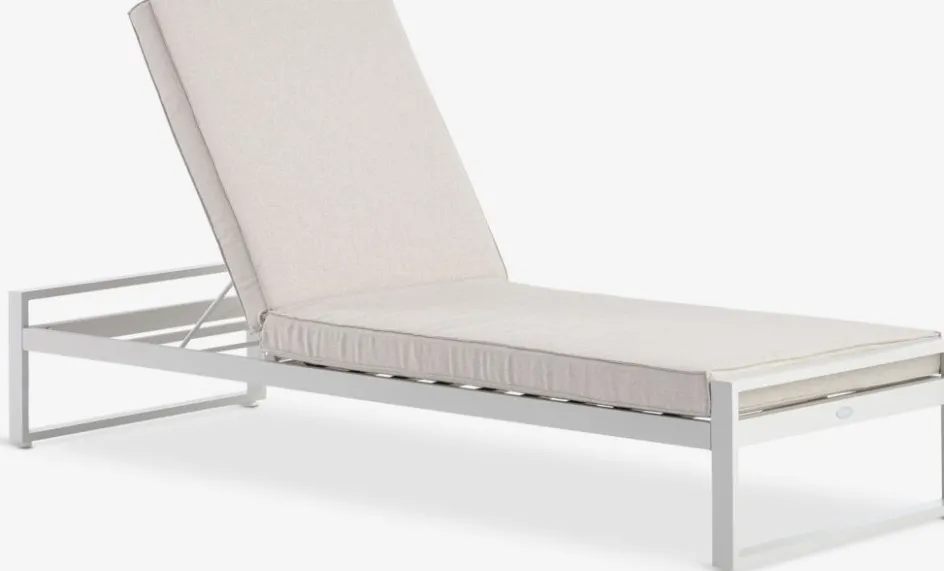 Bain de soleil en aluminium. Incl. coussin haut de gamme avec housse à structure tissée et à séchage rapide. La housse est dotée d’un revêtement étanche à l’intérieur, ce qui empêche l’eau de pénétrer dans le coussin. l75 x L210 x H107 cm