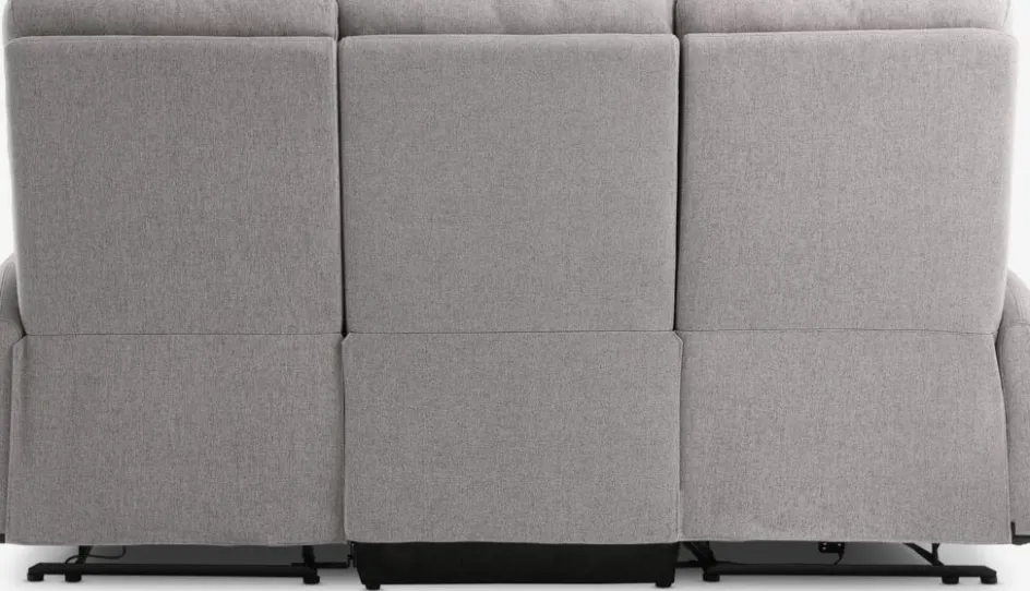 En contreplaqué, acier. Garnissage : mousse polyuréthane (28 kg/m³). Coussin d’assise : 147 ressorts ensachés/m². Revêtement : polyester. 3 places. Les deux places aux extrémités sont inclinables électriquement et ont un repose-pieds intégré. l195 x H87-110 x P97-164 cm