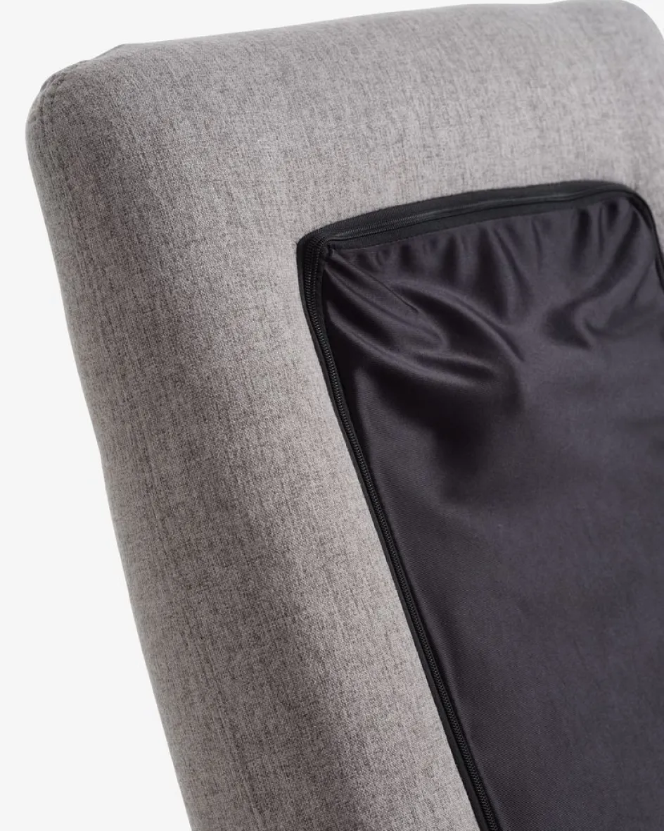 Structure : contreplaqué, acier. Garnissage : mousse polyuréthane (28 kg/m³), ressorts ensachés. Revêtement : polyester. Pieds : polypropylène. Le fauteuil offre un massage par pétrissage avec minuterie. Retirez le coussin dorsal pour un massage plus profond. Mécanisme de basculement, repose-pieds. l78 x H111 x P97 cm