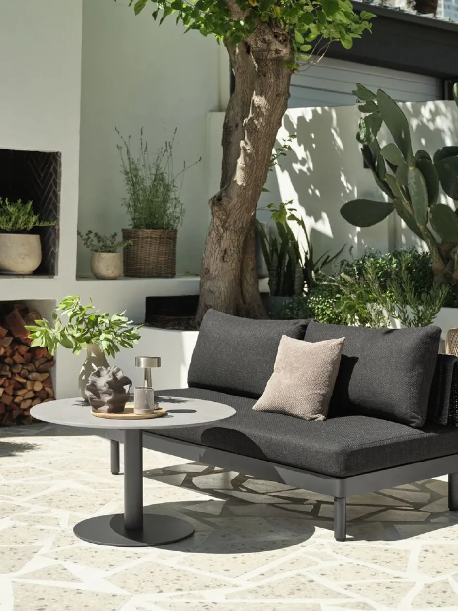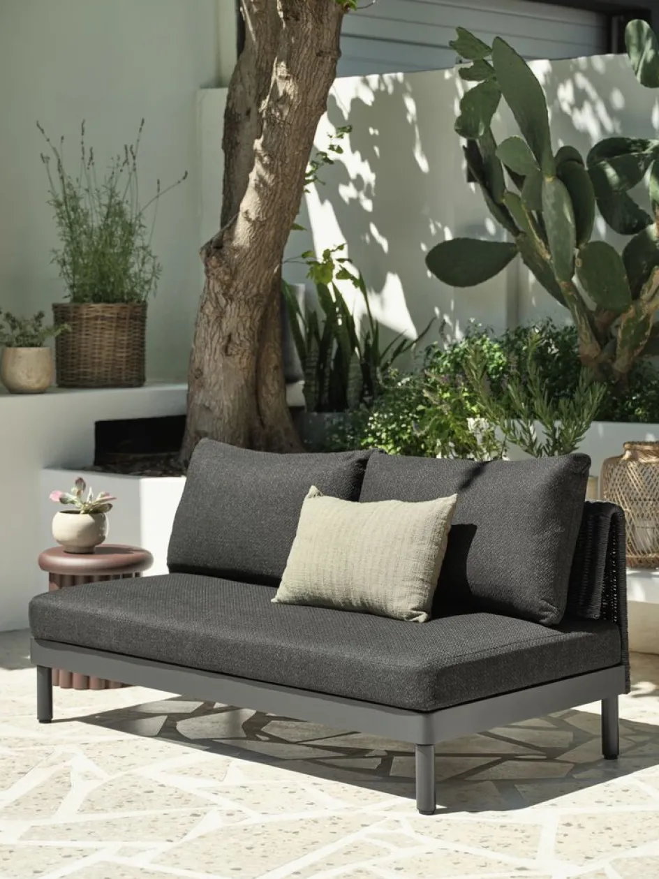 Canapé lounge 2 places en aluminium, acier et polyrotin. Incl. coussins haut de gamme avec housse résistante à structure tissée. l160 x H72 x P86 cm