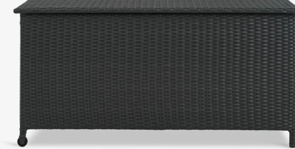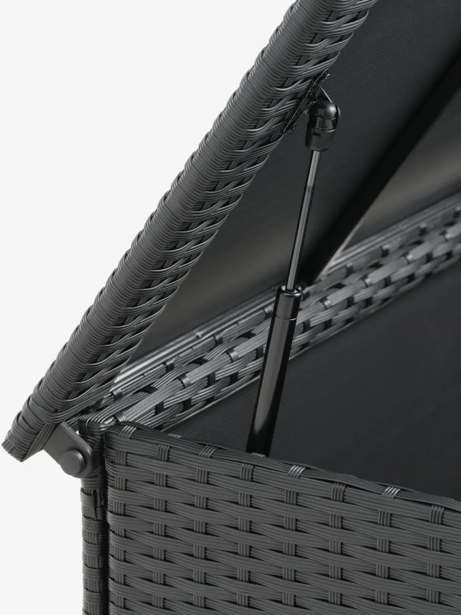 Coffre à coussins en acier et polyrotin. Avec couvercle hydraulique facile à utiliser, roulettes et poignée de tirage. l133 x H64 x P55 cm