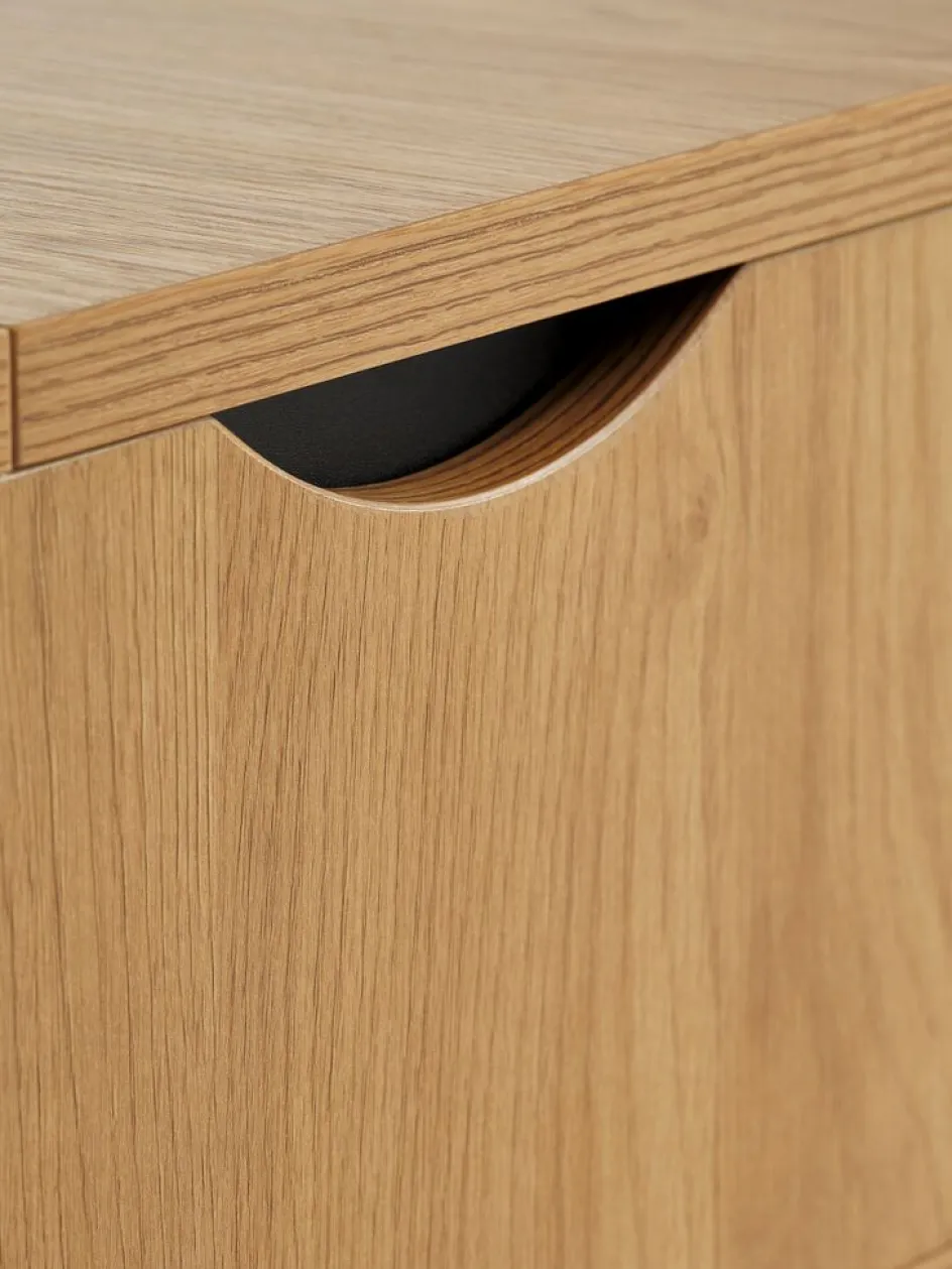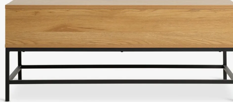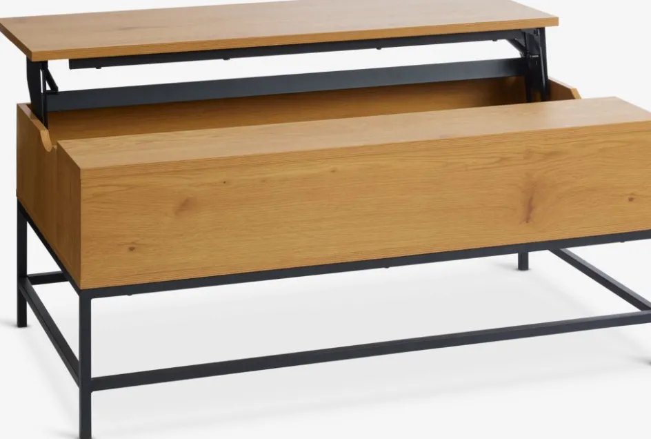 En MDF mélaminé, acier, plastique ABS. Avec plateau relevable et espace de rangement. l60 x L110 x H45/57 cm